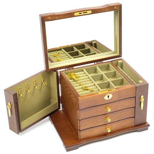 4-Layer Wooden Jewelry Box Jewelry Storage Box Necklace Ring Organizer Best Gift